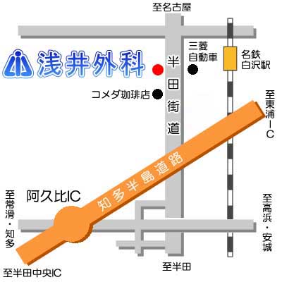 周辺地図 470-2201 愛知県知多郡阿久比町白沢天神前33-2 Tel:0569-48-8787 Fax:0569-48-8788 交通案内 電車の場合 名鉄河和線 白沢駅から徒歩3分自動車の場合 知多半島道路 阿久比ICから車で3分 ※駐車場完備(100台)
